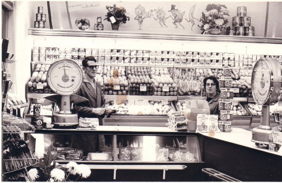 Vroeger waren kruidenierswaren vaak niet verpakt en dus ook niet gereed om eventjes snel mee te nemen. Alles moest worden afgewogen in grauwe, papieren zakken waarin soms een voerinkje van doorschijnend cellofaan zat. Zo’n winkel had een sociale functie. Daar werden de laatste nieuwtjes uit de buurt uitgewisseld.